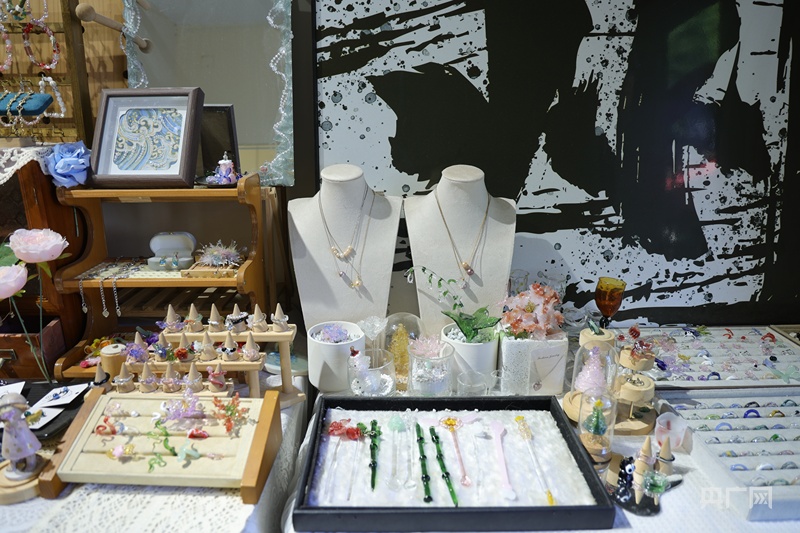 “璃想造梦坊”工作室里成品展示区摆满了琳琅满目的玻璃手工艺品(央广网发 陈彦希 摄)