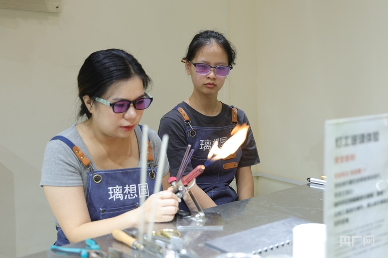 走进“璃想造梦坊”工作室,仿佛进入一个玻璃手工艺术的“造梦空间”。工作台上炉火炽热,青年创业者蒋慧手持玻璃管专注操作。在火焰的炙烤与巧妙塑形中,平凡的玻璃材料渐渐化作一只精致的“蝴蝶”。成品展示区内,琳琅满目的玻璃手工艺品吸引顾客驻足——有人细心挑选饰品,有人沉浸于手工体验,在指尖与玻璃的交融中感受文创产品的独特魅力。