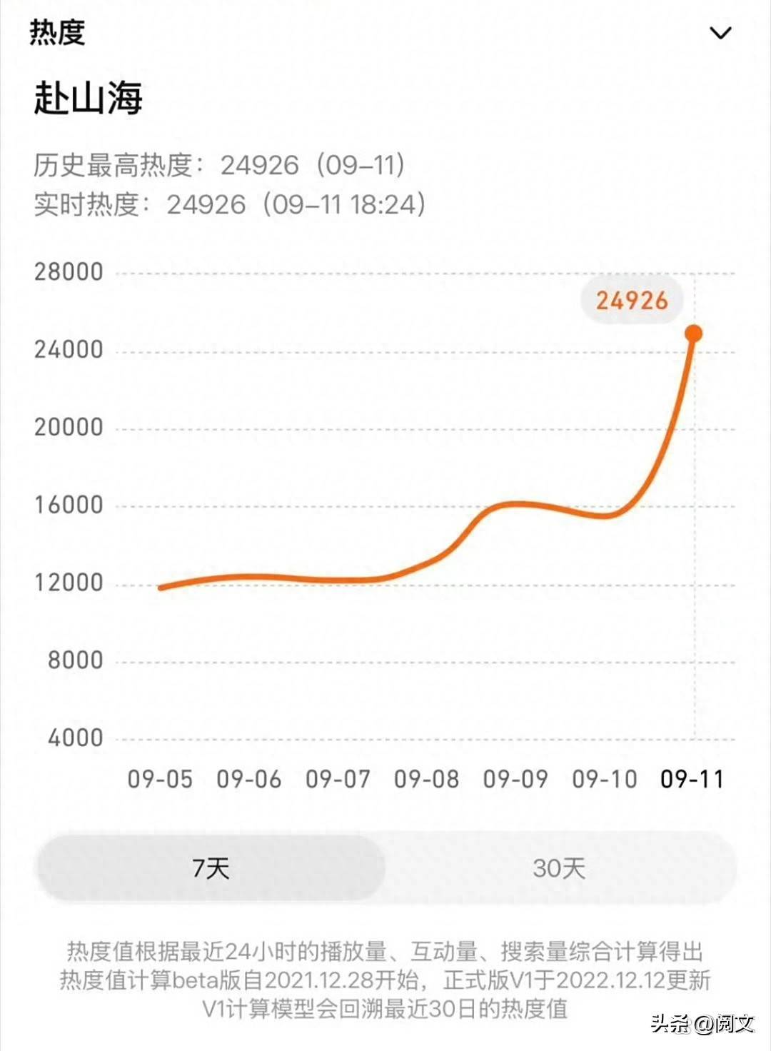 当水墨剑影划破长空,《赴山海》用一组惊世骇俗的数据改写了影视史册。腾讯视频26670的沸腾热度仅用18分钟便冲破天际,这个数字不仅刷新平台纪录,更让同期作品望尘莫及——爱奇艺7657的开门红,直接空降年度新剧三甲之列。