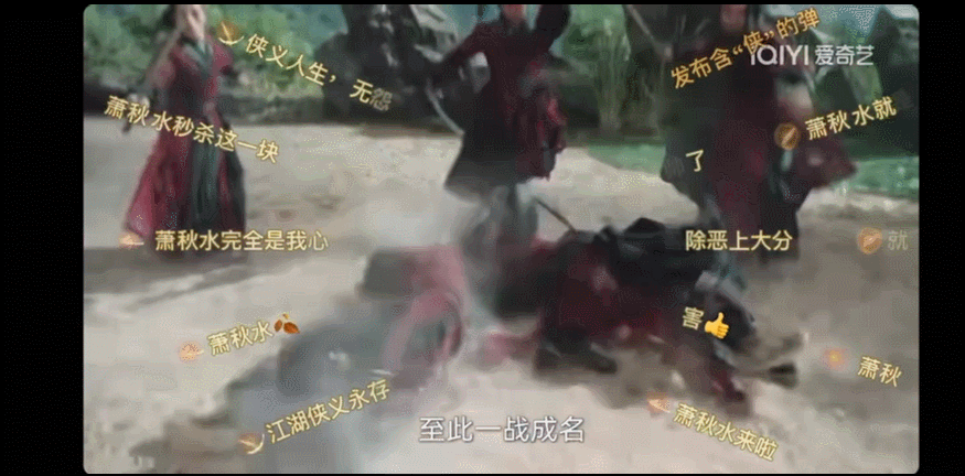 在画面弹幕区域,弹幕如同功力一般自萧秋水发出,并结合剧情中的“惩恶扬善”,非常带感。